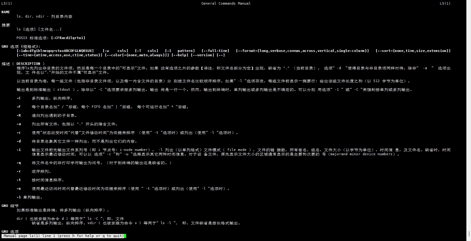 sudo reboot此时再去运行命令:man ls,就会看到中文手册了