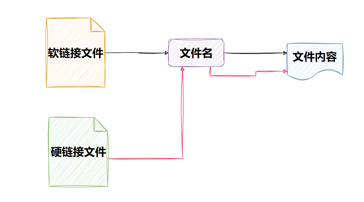 硬链接也是一种链接方式,它允许一个文件不能是文件夹有多个名称,但是它们都指向文件系统中同一个数据块