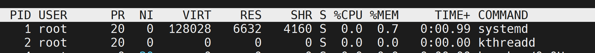 | PR | 进程优先级,越小越高 |