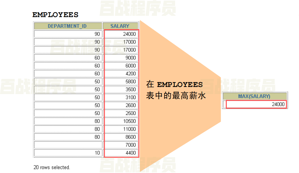 1SELECT last_name, job_id, salary, CASE job_id WHEN 'IT_PROG' THEN 1.10*salary WHEN 'ST_CLERK' THEN 1.15*salary WHEN 'SA_REP' THEN 1.20*salary ELSE salary END "REVISED_SALARY" FROM employees;多行函数 💎