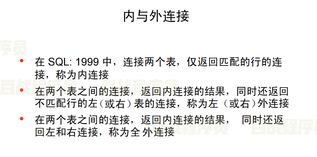 sql92标准:内连接(等值连接 、非等值连接 、 自连接)。
