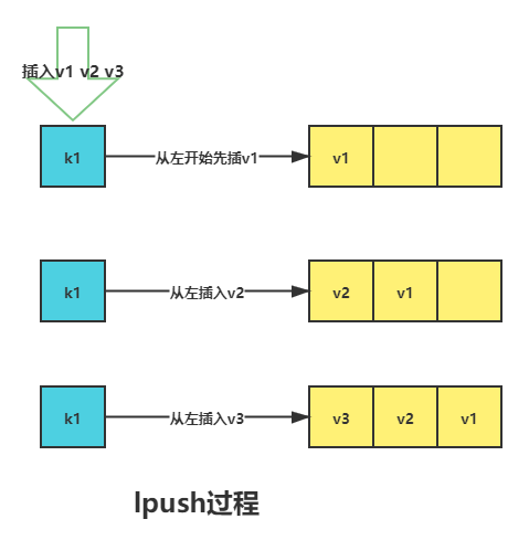 lpush k1 v1 v2 v3