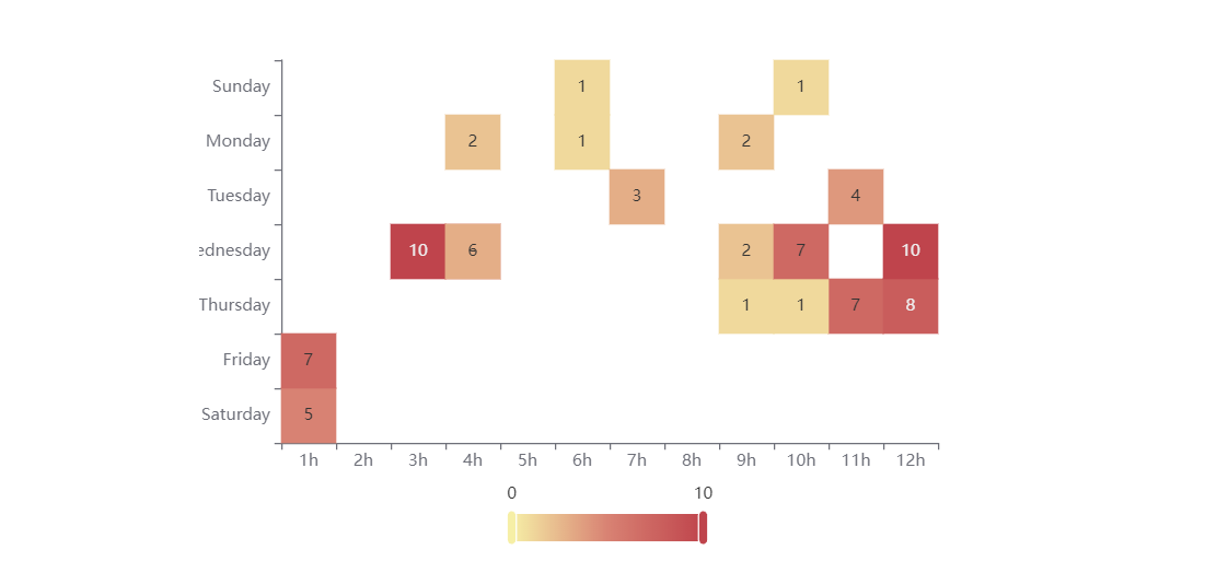 热力图主要通过颜色去表现数值的大小,必须要配合 visualMap 组件使用