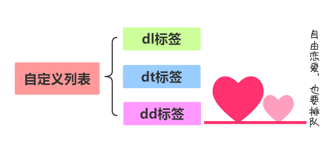自定义列表以 <dl> 标签开始。每个自定义列表项以 <dt> 开始。每个自定义列表项的定义以 <dd> 开始。
