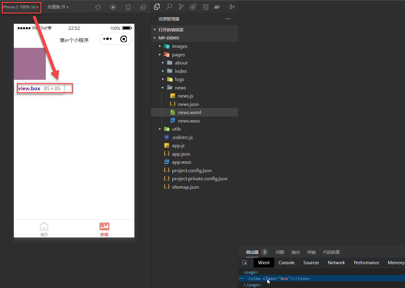 在项目根目录下创建common文件夹,并创建common.wxss文件,增加box的样式
