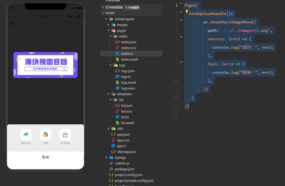 <view bindtap="bindUploadHandle">点击对文件进行操作</view>Page({