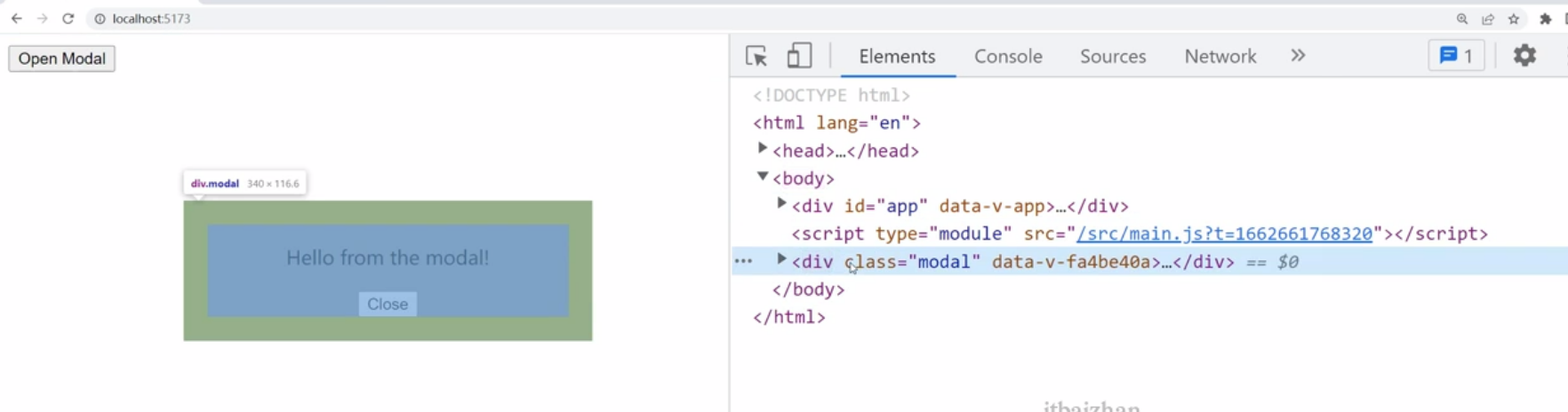 很明显,新增的内容并没有跑到根组件下面,而是跑到了body下面