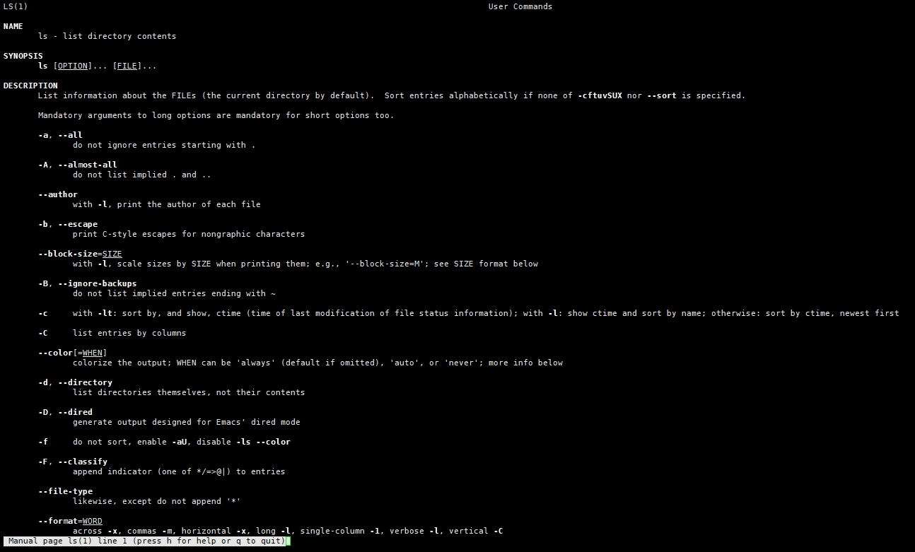 就好比ls命令拥有好多参数,如果记不住,可以使用man命令进行查看