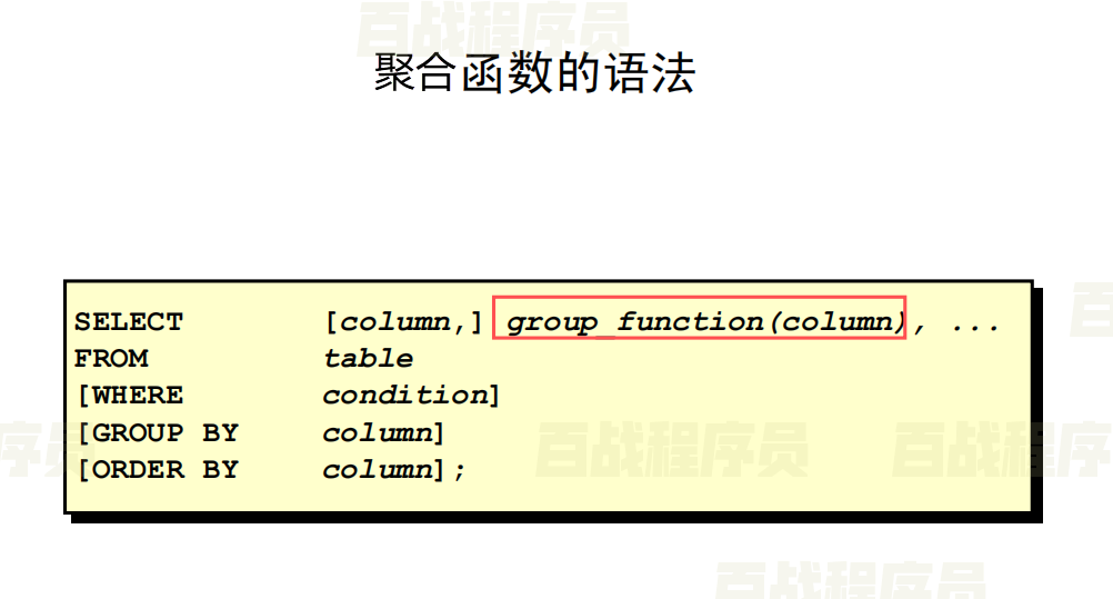 聚合函数也称之为多行函数,组函数或分组函数。聚合函数不象单行函数,聚合函数对行的分组进行操作,对每组给出一个结果。如果在查询中没有指定分组,那么聚合函数则将查询到的结果集视为一组。