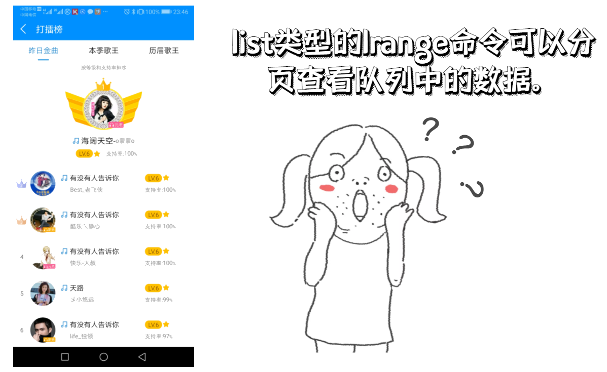 List是简单的字符串列表,按照插入顺序排序。你可以添加一个元素到列表的头部(左边)或者尾部(右边)。底层是一个双向链表,对两段操作性能极高,通过索引操作中间的节点性能较差。