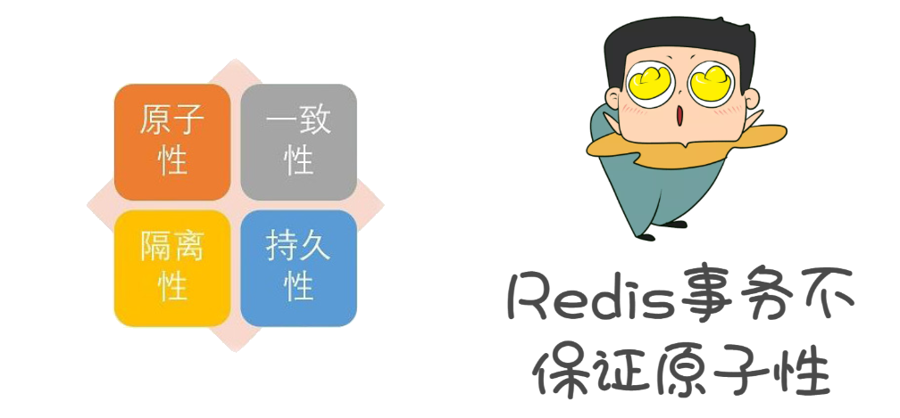 不保证原子性:redis同一个事务中如果有一条命令执行失败,其后的命令仍然会被执行,没有回滚;