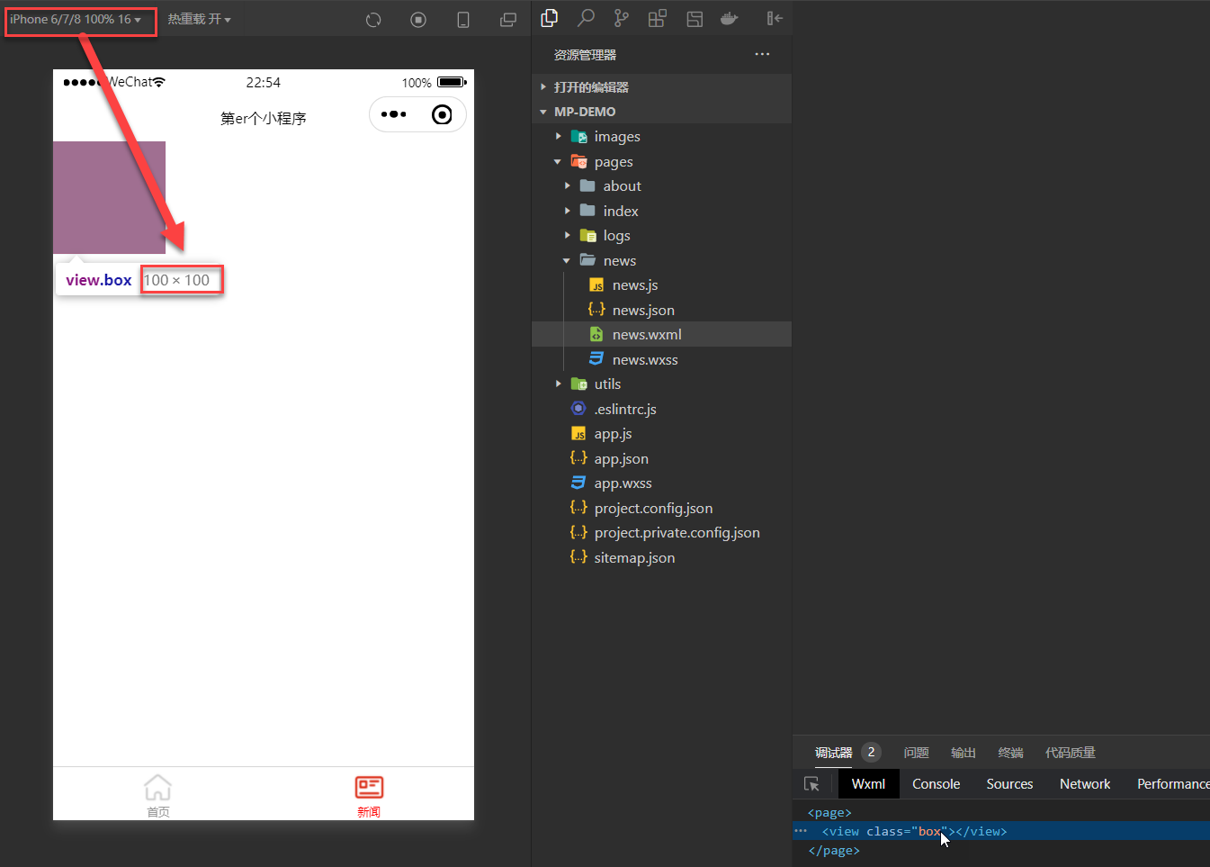 在项目根目录下创建common文件夹,并创建common.wxss文件,增加box的样式
